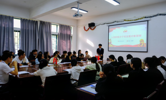 11月2日上午粮工学院第二党支部在知化楼101开展2023年下半年拟发展对象答辩会议。出席此次会议的有粮工学院党总支书记祝方清,学生党支部书记冯书祥,辅导员郭雅纯、殷茂胜,全体学生党员。