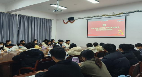 粮工学院第二党支部书记冯书祥、全体学生党员参加本次会议。会议伊始,全体与会党员重温入党誓词,集体学习党章,支部委员对党员班级满意度测评结果、党员积分情况进行了汇报,再第二党支部书记冯书祥代表支部对2023年度支部工作情况进行了报告。报告中,他首先对自身学习情况进行了总结。其次,对支部工作开展情况进行总结,强调了过去一年中支部成员在社会实践活动、公寓安全值班、志愿服务活动、学科竞赛等方面取得显著成绩,并对未来工作进行了规划,包括入党积极分子推举工作、毕业生党员管理问题、支部与分团委学生会工作协调以及成立创业实践小组等方面的指示。