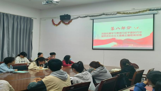 随后陈雪瑶同志带领大家观看“全国两会精神”为主题的相关视频,视频回顾了在以习近平同志为核心的党中央坚强领导下,2023年我国经济,政治,文化,科技等方面取得的丰硕成果。陈雪瑶同志表示,青年一代有理想、有担当,国家就有前途,民族就有希望。新时代中国青年只有不断增强责任感,明确自身对于国家和人民的责任,自觉把自身需要与社会需求相统一、把个人前途与国家命运相结合、把个体发展与民族振兴相联系,在激情奋斗中绽放青春光芒,才能担当时代大任,成为中国特色社会主义的合格建设者和可靠接班人。