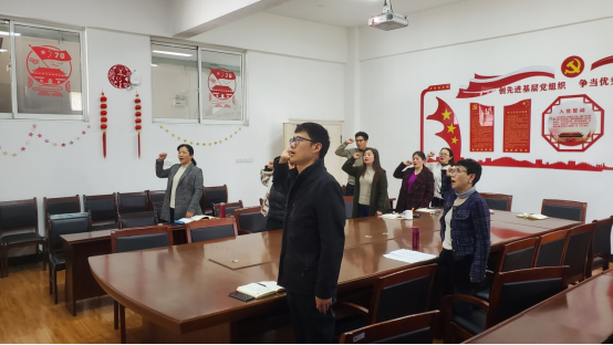 在王徽同志的领誓下,全体人员肃立,庄严宣誓。一声声铿锵有力的誓言,表达出党员干部永远跟党走的坚定决心。