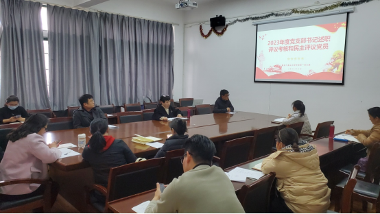 第二党支部书记冯书祥围绕 2023 年度党支部在教育党员、管理党员、监督党员、组织师生、宣传师生、凝聚师生、服务师生等7个方面取得的工作成效,存在的困难不足,下一步整改措施以及2024 年的工作思路进行了述职。