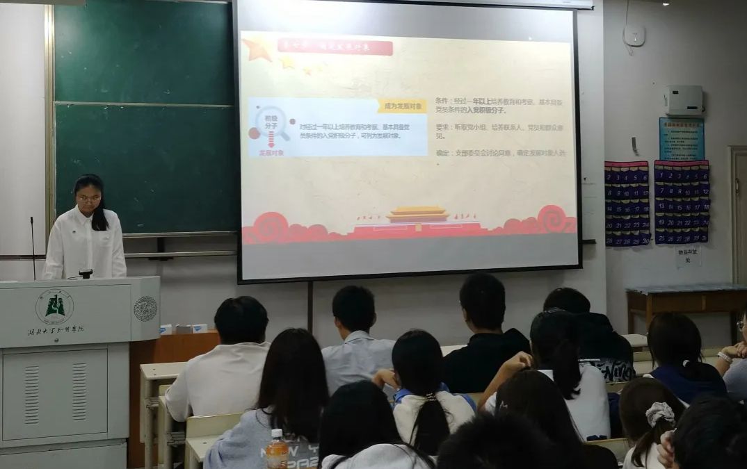 最后,向新生们详细介绍了入党申请书、思想汇报的撰写规范及相关要求。她的细致讲解,为同学们解答了入党过程中的常见问题,进一步明确了撰写材料的注意事项,帮助新生们做好入党的准备工作。