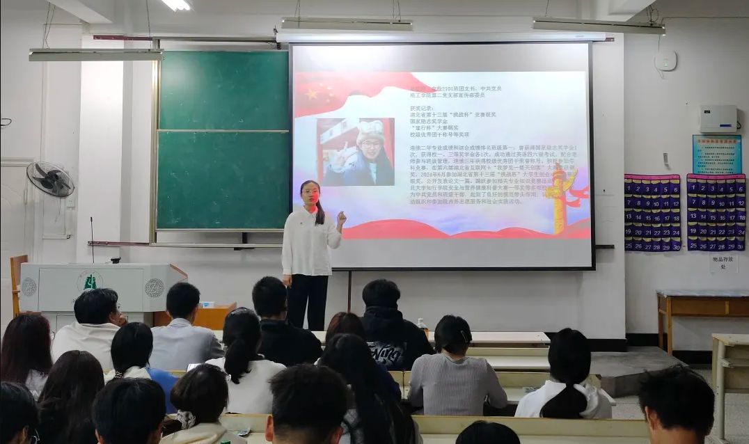 其次向大家介绍黄丽萍、张京宇、杨雯慧、黄子鹏等第二党支部优秀党员事迹,结合他们的鲜活榜样事例,生动讲述并强调了党员在入党过程中应如何保持正确的政治方向、坚定的理想信念和崇高的道德情操。她表示,入党是一件严肃的事情,是对一个学生的学习成绩、行为态度、政治思想、群众基础等多方面的考察。入党不仅是光荣的信仰,更是一种责任与担当,希望2024级新生从入党启蒙教育开始,牢固树立正确的世界观、人生观和价值观,积极向党组织靠拢,早日成长为担当民族复兴大任的时代新人。
