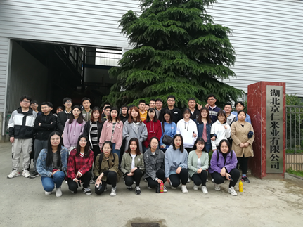 4月28日,细雨绵绵,食品科学与工程专业16级和食品加工技术17级共46名学生在beat365杨登想、熊万斌及刘爱红三位教师的组织下,13点集中出发前往湖北京仁米业有限公司参观学习。历经雨天路滑,修路限行,师生于14点30分到达目的地,公司领导及有关职工热情迎接。