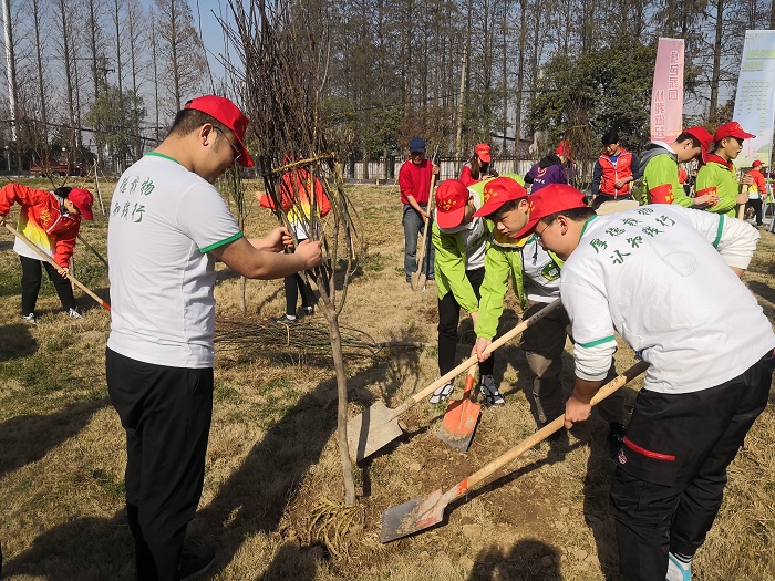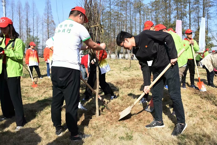 2019年3月12日是全国第四十一个植树节,为响应习近平总书记“绿水青山就是金山银山”的号召,培养学生“爱校、美校、荣校”、“爱林、护林、造林”的环保意识,3月12日上午10时,校团委组织开展“师生添抹绿,春意满校园”义务植树活动,学校领导和各院系青年志愿者代表参与本次义务植树活动。beat365中国官网师生积极参与,分工合作,培土浇水,互帮互助,一起种下红枫树苗。“绿满校园怡人心,花开遍地笑常存”,通过师生共同植树活动,既提高了同学们的生态保护意识,增进了师生感情,也引导同学们热爱校园、热爱劳动,营造师生共同参与校园建设的良好氛围。
