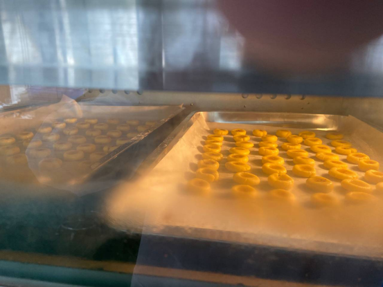美食制作分为两个板块:新中国成立70周年纪念蛋糕,甜点桂花玛格丽特。现场参与制作的同学迅速被然起了激情,大家认真学习操做后投入了制作美食的乐趣之中。