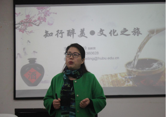 孙美玲老师在讲座中围绕酒文化展开介绍,老师用饱满的热情向同学们讲解酒的起源与发展,酒类百科知识,中西酒文化差异,酒桌礼仪,品评与鉴赏等等。中国制酒历史源远流长,品种繁多,名酒荟萃,享誉中外。酒渗透于整个中华五千年的文明史中,从文学艺术创作、文化娱乐到饮食烹饪、养生保健等各方面在中国人生活中都占有重要的位置,这也让同学们感受到酒文化背后的悠久历史。