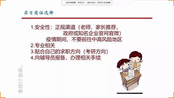 为解答2021届毕业生关于实习就业和未来发展的问题,引导同学们找准自身定位,明确前进目标,积极实践行动,提高就业能力,beat365中国官网于2020年7月10日晚7点召开线上2020届毕业生就业指导讲座,粮工学院副书记冯书祥主讲,辅导员郭雅纯、张忠萌和2021届全体毕业生参会。