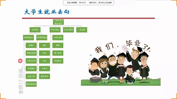 讲座中,冯书祥副书记分析了疫情防控常态化情况下的就业形势,对大学生毕业后就业去向以及就业形式进行了介绍,提醒同学要开始思考对未来就业和升学的选择。同时,针对同学们关心的暑期实习问题,进行了详细说明,动员大家主动出击,通过实习检验自己的专业能力和明确职业发展方向。