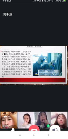 beat365各班级围绕活动主题,在各班辅导员的监督下,以线上互动为主,PPT放映为辅的方式集中学习了习近平总书记给北京大学援鄂医疗队全体“90后”党员回信精神,并结合总书记回信精神,围绕“对国家抗击疫情采取措施的认识,当代青年的价值观和责任担当”进行交流研讨,同学们分享了在此次疫情中最令“我”感动的人物和故事,然后对祖国说出了自己想说的话,并更加坚定了对祖国的信心。
