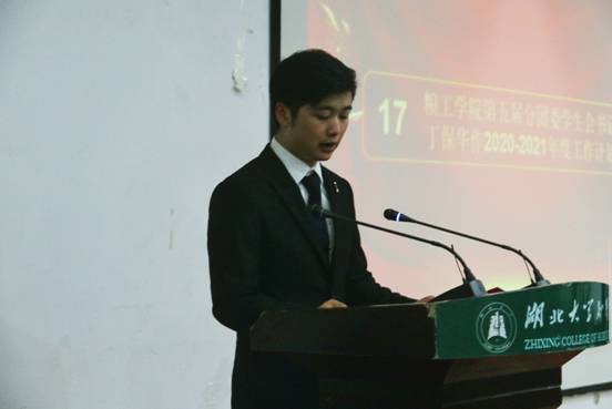 本次大会首先由粮工学院第五届分团委学生会主席王信怡致开场词,祝愿本次大会能顺利进行,以及对现场的嘉宾与同学的感谢。紧接着,由第四届分团委学生会副书记李金源作学年工作总结。总结中表明了对粮工学院分团委学生会干部上一学年工作的肯定。