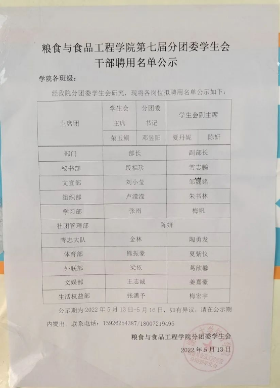 beat365中国官网第七届分团委学生会干部聘用名单公示