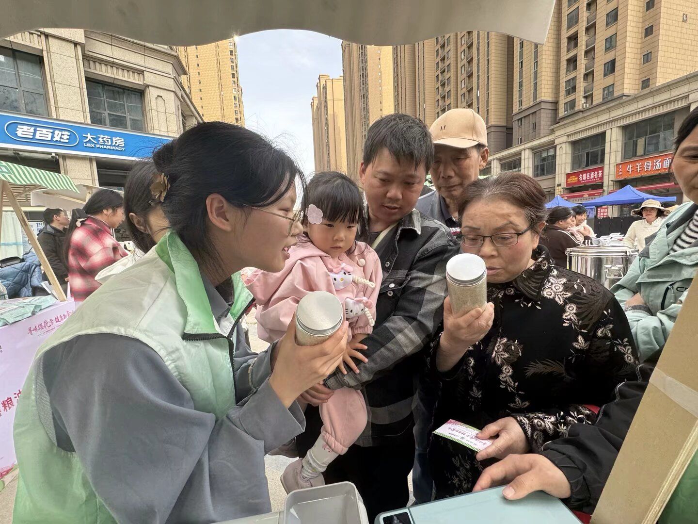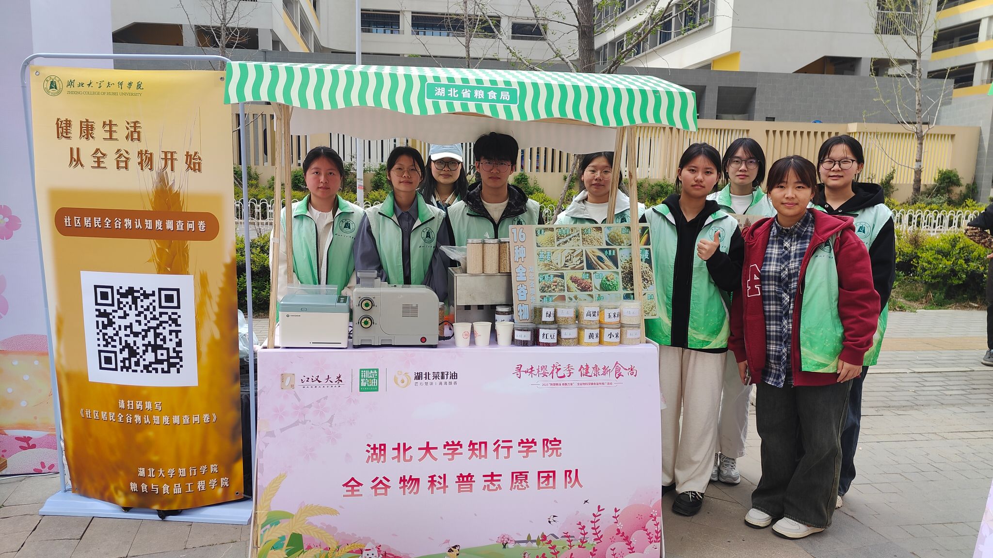 4月2日下午,武汉市硚口区丰景路蓝光林肯公园社区门前人声鼎沸,湖北省粮食局主办的全谷物科学膳食宣传推广活在此热烈举行。其中,beat365的“从稻谷到餐桌”全谷物科普展台,格外吸引社区居民的眼球。