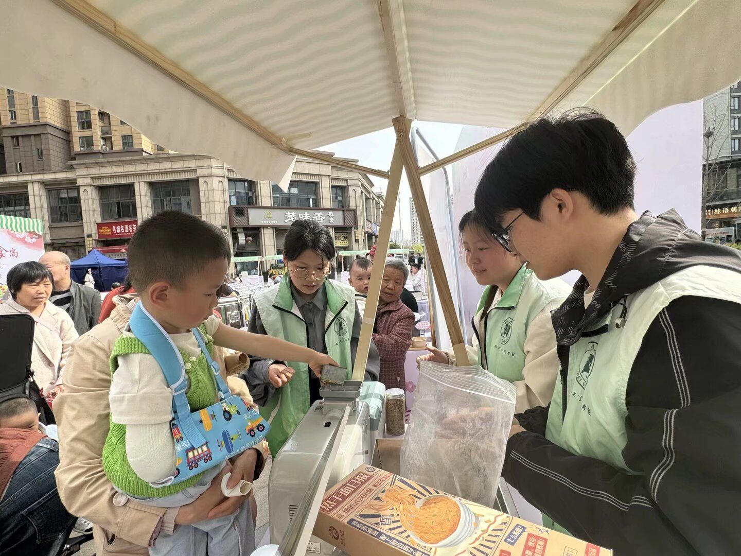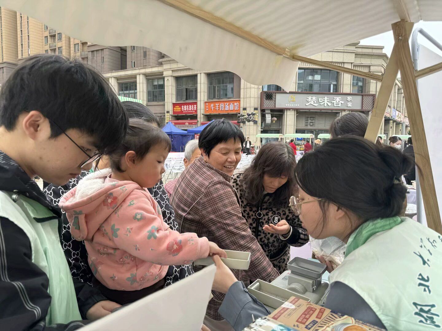 在活动现场,beat365的师生们利用展板、实物及互动体验等多元化形式,形象地向居民展示了稻谷加工成大米的全过程。砻谷机、碾米机等稻米加工设备的展示尤为引人注目,小朋友们纷纷围在机器旁,满心好奇地观察稻谷是如何一步步蜕变成大米的,并有机会亲身体验操作过程。“原来我们每天吃的米饭是这样生产出来的!”一位小朋友兴奋地喊道。同时,beat365志愿者们现场发放全谷物膳食宣传单,耐心引导居民填写调查问卷,收集民众对科学膳食的看法与建议。