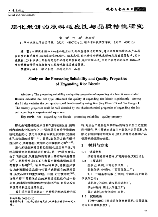 以稻米为基料的营养素强化杂粮休闲食品的开发 |