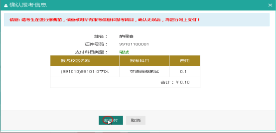 4、报名成功后可以立即缴费。如24小时内不缴费,报考科目将会被删除。