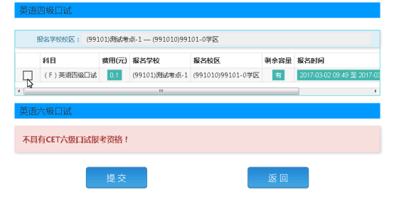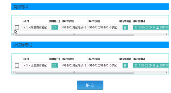选择要报考的口试科目,点击“提交”按钮。