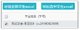 ★第2步:选择需要导出文件的学生名单,点击“导出全部学生excel”或者“导出选中学生excel”按钮,提交后台生成导出的文件