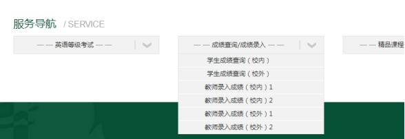 第二步,在教务处主页最后的 “服务导航”模块中选择“成绩查询/成绩录入”(如图所示),可进入教务管理系统;
