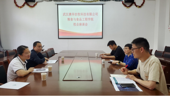 武汉澳华农牧科技有限公司副总经理付文超介绍了企业发展,用人需求等情况,刘齐院长介绍了学院专业设置、校企合作现状。双方就人才培养、实习就业合作等共同话题进行了深入探讨交流,祝方清书记带领企业来宾参观了实验室和校园建设情况。
