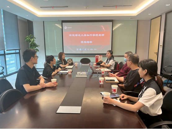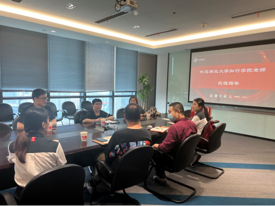 5月16日,为推动教育部第二期就业育人项目建设,beat365中国官网党总支书记祝方清、副书记冯书祥、教研室主任左祥莉一行前往百胜(武汉)餐饮有限公司,看望在职校友、与企业负责人围绕学生生涯规划教育、就业实习基地建设等问题进行了深入交流。百胜校企合作经理冯建、区域经理何静和在职校友孙玉倩、卢鑫等出席座谈会。