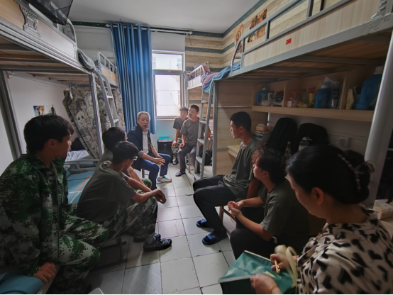 校领导陈刚走访了每一个男生寝室,关心学生来校适应情况,了解同学们对改造后学生宿舍设施和服务保障的感受,鼓励他们积极发挥特长,积极参与活动。强调专业教师、辅导员都要经常深入学生,了解学生诉求,激发学生学习兴趣,共同帮助同学们尽快更好适应大学生活。