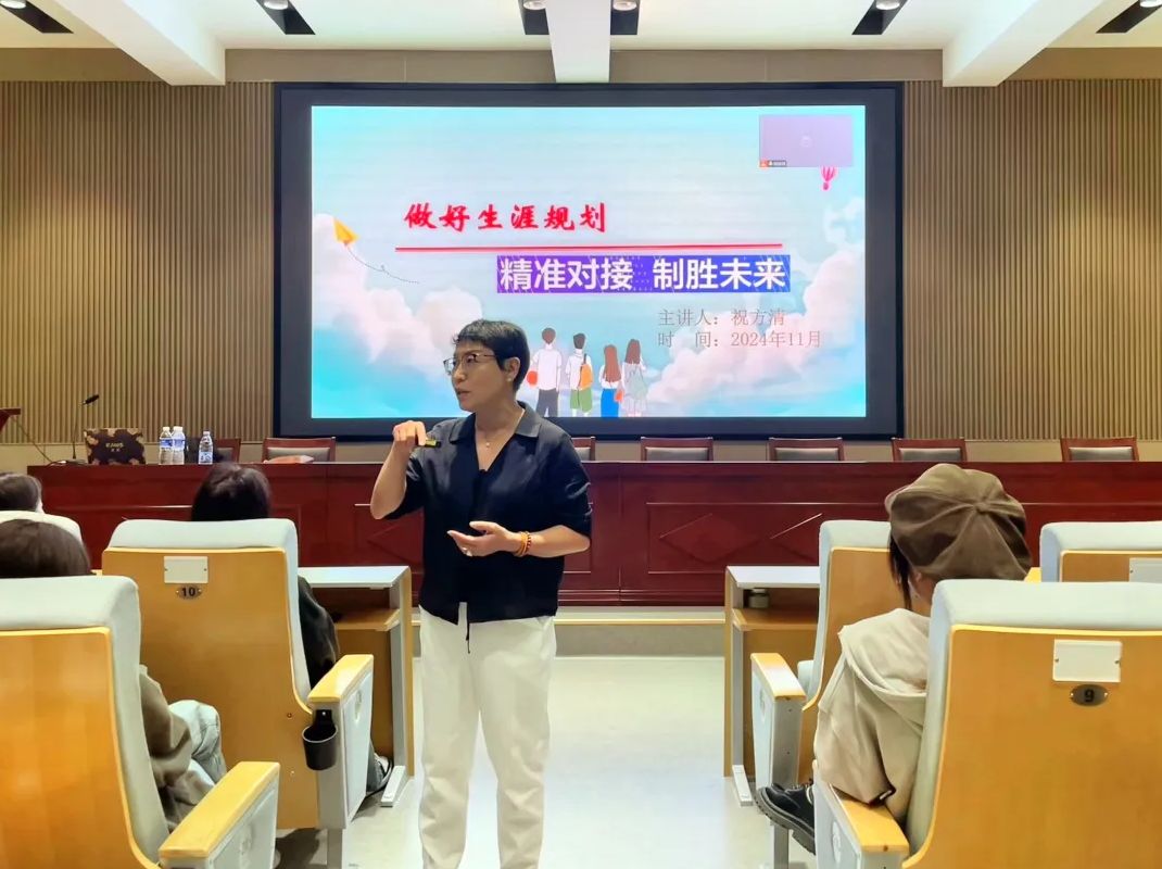 2024年11月4日晚,粮工学院在报告厅106举办职业生涯规划与就业指导专题讲座,讲座由学院党总支书记祝方清主讲,近200名各年级在校学生参加。