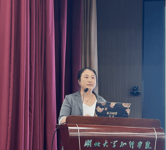 第二位嘉宾是童小雪女士,她是武汉光谷卓越科技股份有限公司副总经理、光谷经理人联合会副会长、中南民族大学企业导师,还拥有高级经济师、一级人力资源管理师、薪税师等专业资质。童小雪女士围绕《搭建从校园到职场的高速路》这一主题展开讲座,她结合自身在光谷科技产业的丰富经验,为同学们细致解读了从校园到职场的过渡路径,分享了实用的求职技巧与职业规划建议。