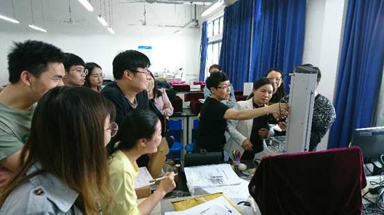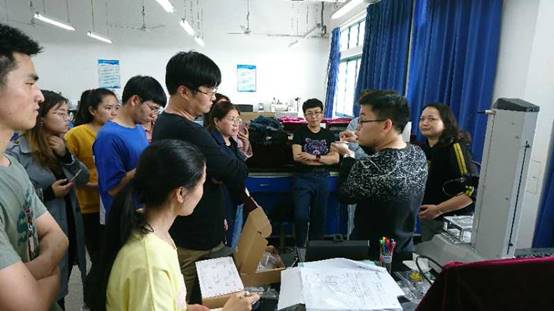 在培训中,工程师就相关硬件的安装和装卸进行了重点强调,比如感应装置的调换安装,同时对软件界面的设置和使用方法及不同样品的适用探头进行了介绍,刘爱红老师和多位学生在工程师的指导下进行了样品测试。