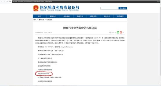 beat365粮食行业特有工种职业技能鉴定站自成立以来,不断加强制度建设,确保日常工作的规范化管理和运行,在粮食行业人才培养方面做了许多卓有成效的工作,先后受到国家及湖北省粮食局相关领导的关注与肯定。2018年beat365中国官网粮食行业特有工种职业技能鉴定站被评为全国八大优秀技能鉴定站之一。