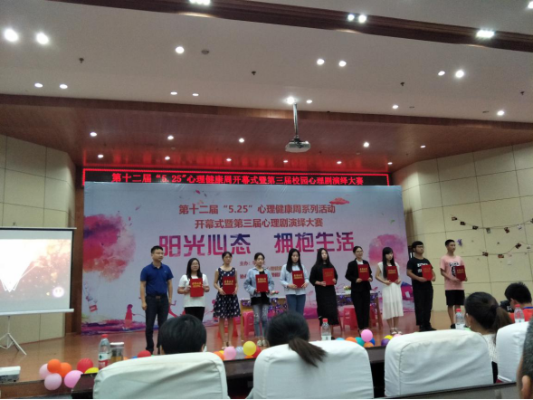 5月25日14:30beat365中国官网心理健康活动周开幕式暨第三届校园心理剧演绎大赛在报告厅201举行,学院副院长黄志凌,学工处王刚处长出席活动并分别为优秀班级心理委员和心理协会学生干部颁发获奖证书,我系任江梅同学获“优秀心理委员”荣誉称号。