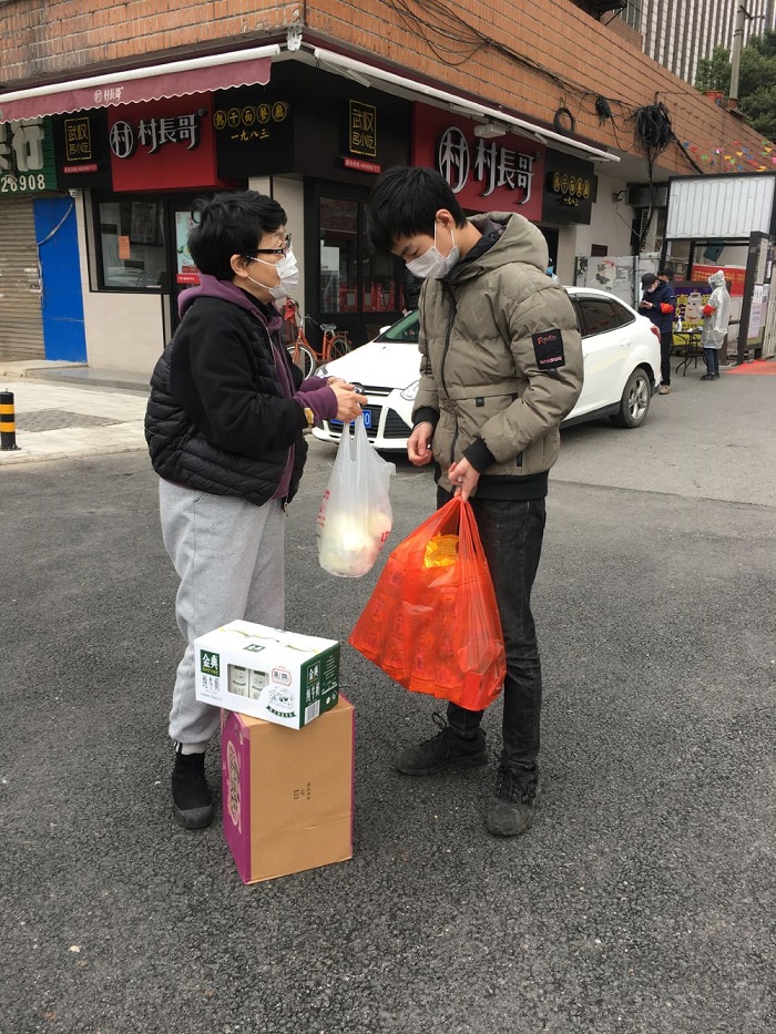题记:根据教育部财务司、财政部科教和文化司《关于做好新型冠状病毒感染肺炎疫情防控期间学生资助工作的通知》(教财司函【2020】30号文)要求,学校学工处和学生资助中心对相关工作进行了安排部署。粮工学院祝方清书记在接到工作任务后,及时到校领取学校为学生购买的牛奶、面包、方便面、卤鸡蛋等生活救助物资,按照学院留汉学生名单,一一提前与学生联系,了解生活学习情况,核对武汉居住地址,并进行了分工,其中祝方清书记、刘爱红老师一组,前往武昌区、洪山区看望慰问三名留汉学生,送去学校准备的生活物资和温情关怀。刘爱红老师做了工作纪实,分享如下。