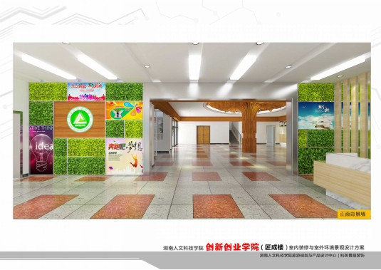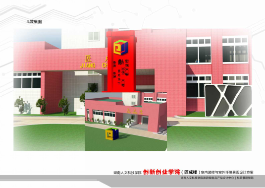 外墙大门做创新创业学院院名,匠成楼名移右上角。墙体做整体风格设计改造。