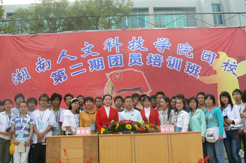 10月27日下午,由院团委主办的团校系列讲座之全国道德模范杨怀保励志报告会在理科楼前坪隆重拉开帷幕。院党委书记黄懿斌同志,院团委书记侯建斌同志,院团委副书记周海强、谢柳同志及各系团总支书记出席了此次讲座,讲座由黄懿斌书记主持。