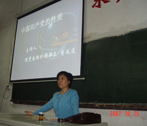 10月25日晚,化学与材料科学系91名学员在1栋101教室成功举行了第三期党员培训开学典礼,并开始了第一课时的授课。院党委组织部长李凤莲部长为学员讲授了第一讲“中国共产党的性质”。