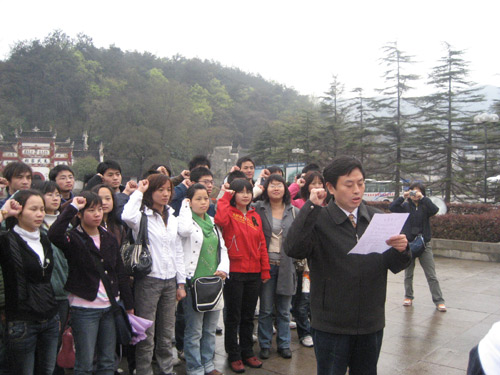 3月22日,通信与控制工程系党总支组织本系预备党员和部分入党积极分子来到了伟大领袖毛主席的故乡--韶山。在系学生党支部书记谭甲凡同志带领下,28名预备党员在主席铜像前举起右手庄严宣誓。系党总支书记舒畅同志语重心长地告诫大家,一定要牢记誓词,严格要求自己,发挥党员的先锋模范作用,自觉践行入党誓言。