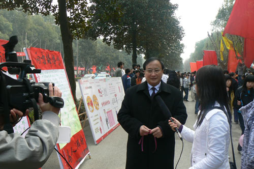 今年会党委书记、院长姜正国教授在活动现场接受采访