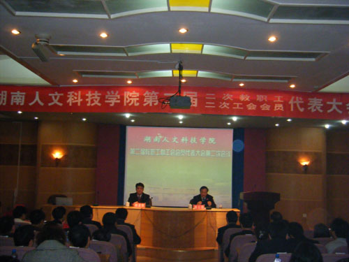 大会听取了校长柏连阳同志的工作报告。报告回顾了学校2009年在教学、科研、评建、管理、服务等方面取得的成绩。报告指出,学校2010年将认真贯彻落实党的十七大和十七届四中全会精神,深入学习实践科学发展观,紧紧围绕办人民满意高等教育目标,深化改革、优化结构、强化特色、提高质量,坚持教学工作中心地位,转变发展理念,转变发展方式,继续发扬艰苦创业,奋力拼搏的精神,推进学校各项事业统筹协调持续发展,为顺利通过本科教学工作合格评估奠定坚实基础,为建设教育强省作出应有的贡献。