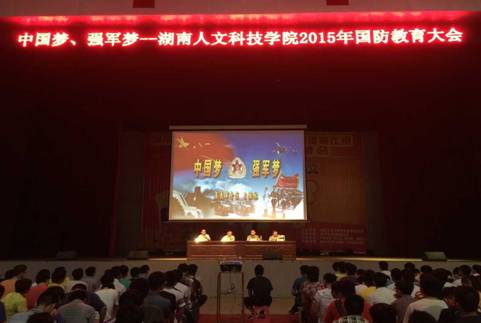 为加强今年会学生国防军事教育,增强国防安全意识,激发学生爱国情怀,鼓励在校学生参军入伍,5月26日晚,特邀请娄底军分区政治部主任王福林大校、娄星区武装部部长林承鸿上校在学校体育馆举办了一场题为“中国梦·强军梦”的大型国防教育讲座。大一、大二近4000名学生参加。校长助理谢贵辉主持会议。