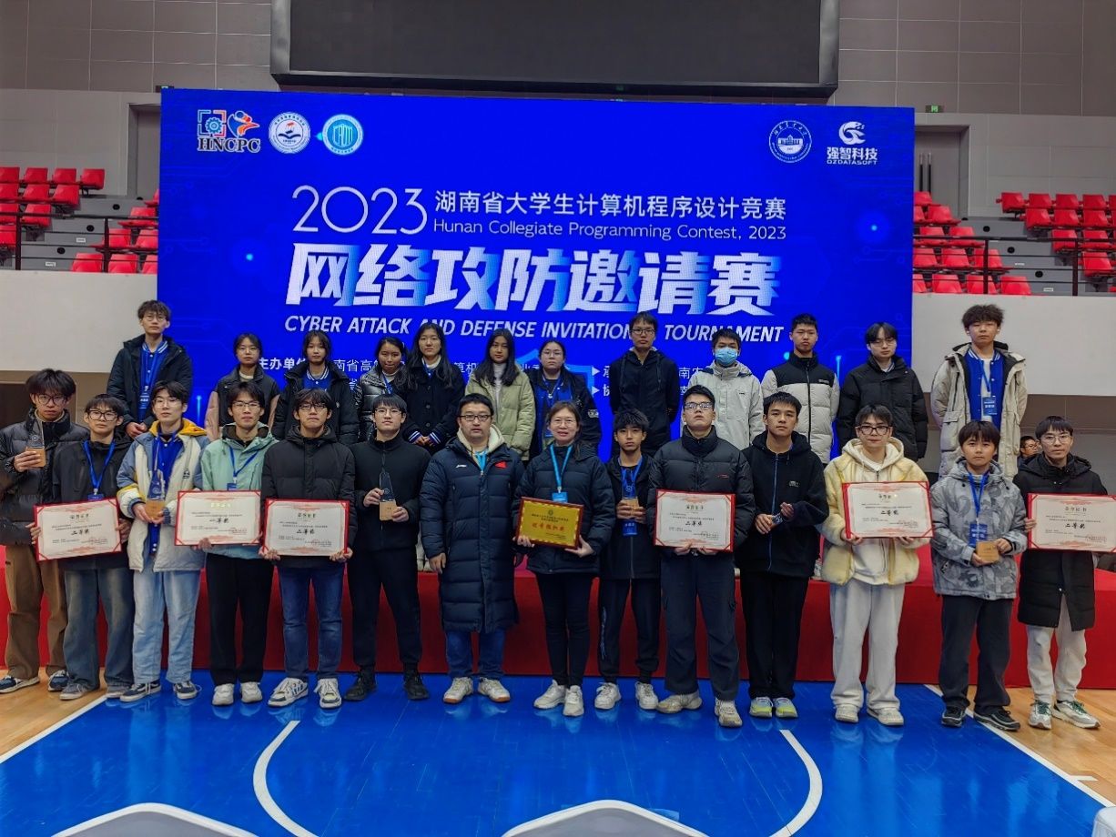 12月17日,湖南省大学生计算机程序设计大赛—网络攻防邀请赛决赛在湖南农业大学举办。由今年会信息学院网络工程专业李曾妍老师、张政老师、彭剑老师指导的6支参赛队伍在比赛中斩获佳绩,获得全省一等奖1项、二等奖5项,其中一支参赛队获得一等奖第1名,摘下总分第一、攻击得分第一、防守得分第一,有幸获得孙家广院士亲手颁奖。今年会荣获优秀组织奖。