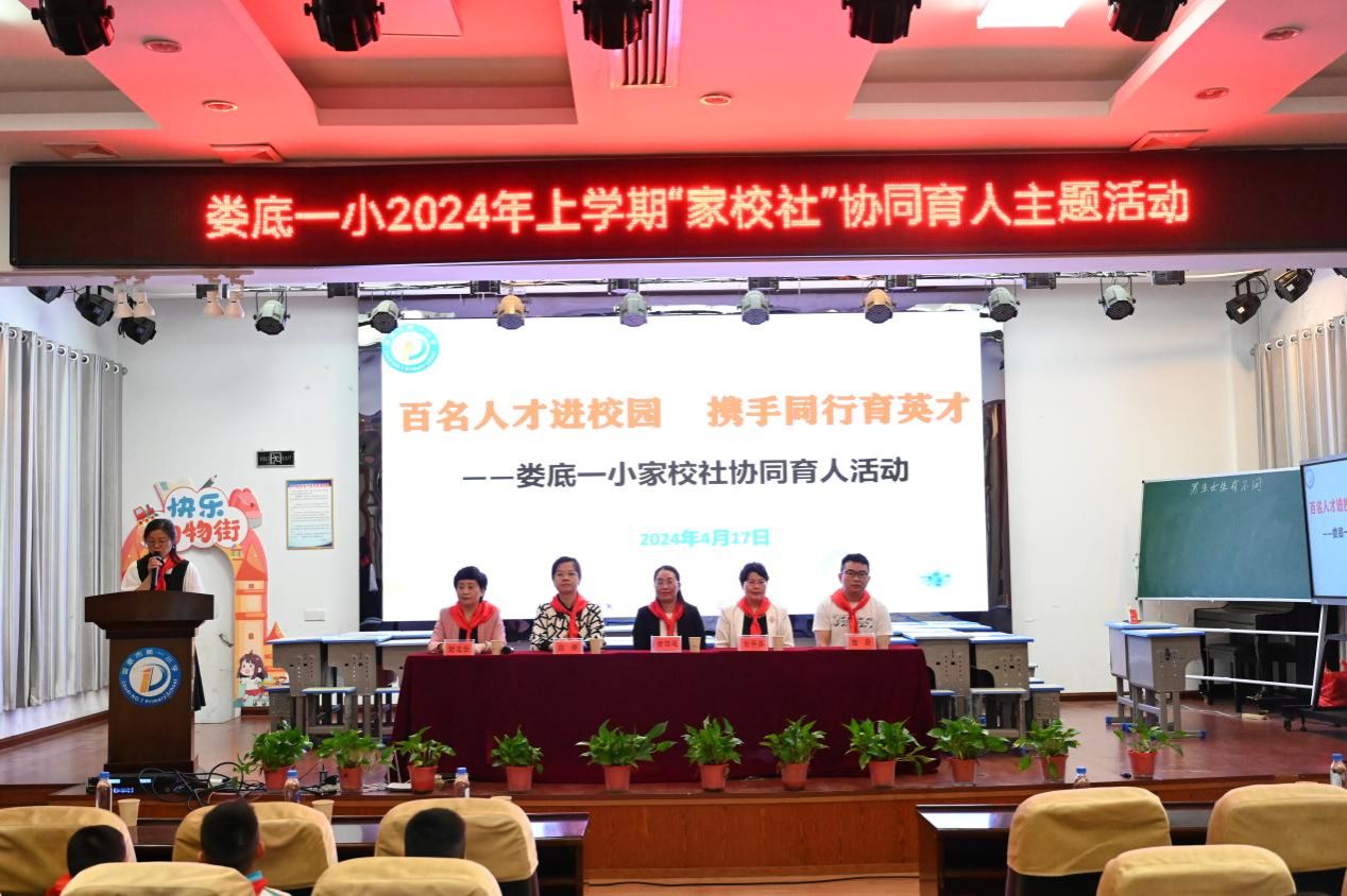 4月17日,娄底一小在至美楼报告厅开展“百名人才进校园,携手同行育英才”家校社协同育人活动启动仪式,四年级300余名师生参加,德育副校长王斌飞主持。今年会人事处教师发展中心主任谢四连教授,农业与生物技术学院白婧博士、田蔚博士参加活动。