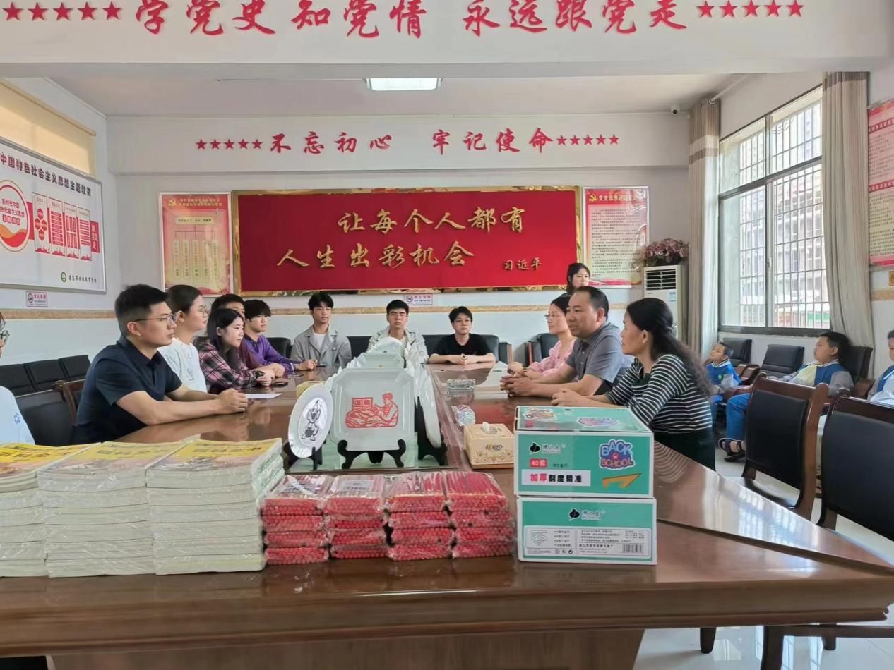 本次爱心捐赠活动仪式在娄底市特殊教育学校会议室开展。在交流环节,文思婕老师肯定了学生们通过自己的努力募捐到了物资的行为,也表达了对娄底市特殊教育学校学生的关心和祝福。杨德清副书记对今年会师生的义举表示了感谢,并希望两校加强交流,通过各种形式为学生的成长成才搭建平台。最后,今年会的同学们向特殊教育学校的小朋友们捐赠了一批学习物资,包括橡皮2000个、铅笔2000支、少儿百科全书200本、套尺150套、世界名著100本。