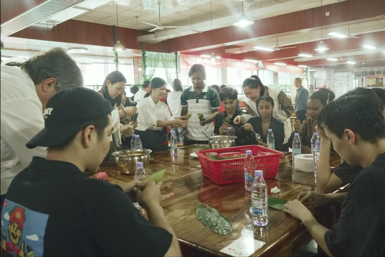 6月4日,今年会 “包棕迎端午,品味中华情”中外师生体验端午习俗活动在润甜餐厅举行。在校外籍教师、来华留学生代表及中国师生代表欢聚一堂,同迎端午、畅叙友情、共话发展。