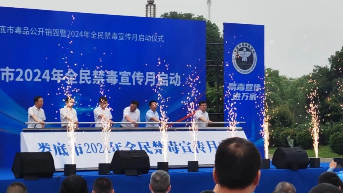 6月3日,由娄底市禁毒办主办,市公安局、各县市区禁毒委员会承办的娄底市毒品公开销毁暨“禁毒宣传进万家”全民禁毒宣传月活动启动仪式在孙水公园举办。本次活动由娄底市人民政府副市长、市公安局局长、市禁毒委常务副主任黄江民主持。来自市禁毒委成员单位代表、禁毒志愿者代表、社区干部和群众代表、青年学生代表等共计400人到会。今年会保卫部部长周友、保卫部综合科科长段楠、农业与生物技术学院团总支书记周洋及该学院200余学生代表参加了本次启动仪式。