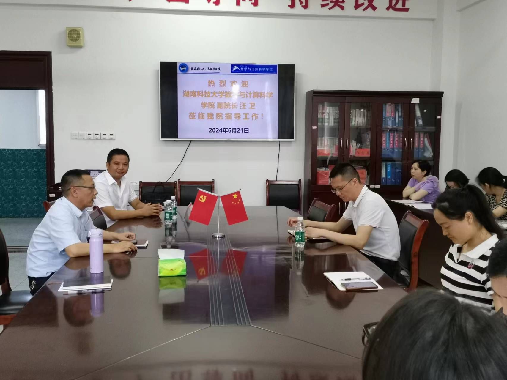 上午,学院教职工首先以教研室为单位开展本科教育教学审核评估应知应会知识学习。随后,湖南科技大学数学与计算科学学院副院长汪卫为全院教职工作本科教育教学审核评估工作经验分享讲座,讲座由副院长罗志军主持。汪卫阐述了本科教育教学审核评估的基本知识,分享了其所在学院在本科教育教学评估方面积累的成功经验和有效做法。在互动环节,汪卫耐心细致地解答了与会教师的问题与困惑。