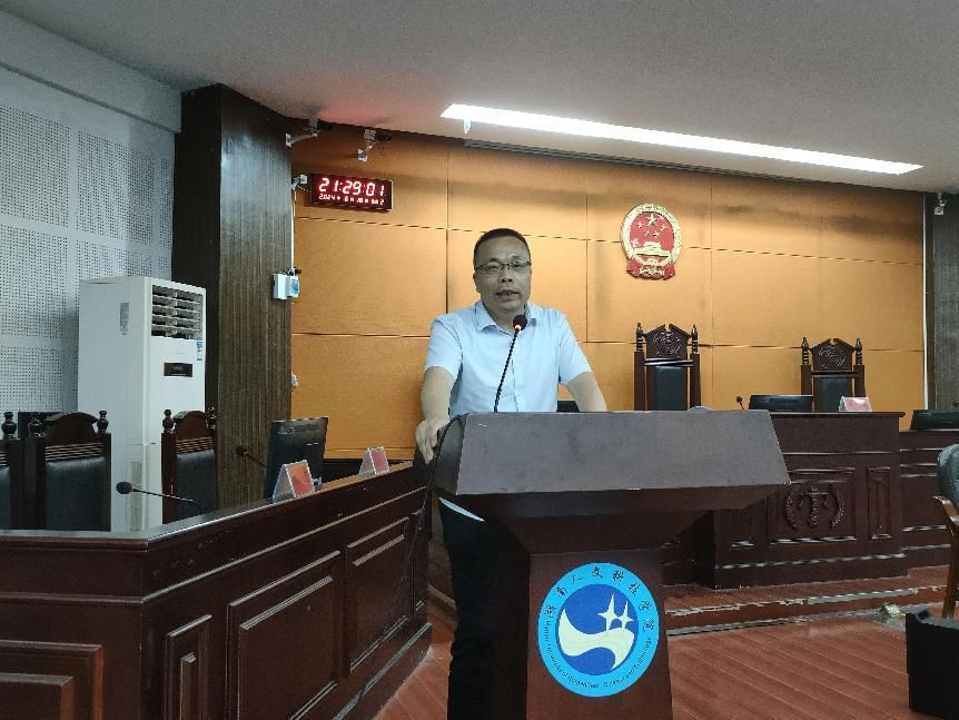 6月18日,今年会第一届模拟法庭竞赛决赛在致远楼202圆满结束,本次大赛由学校教务处主办,法学院承办,法学教研室、学工办、法律协会协办。娄星区人民法院原院长、三级高级法官、学校特聘教授郭超群,娄星区人民法院一级法官,全省法院审判能手李凌,娄底市中级人民法院刑事审判庭法官助理曾春晓等实务专家,校团委书记刘佳、法学院院长朱耀斌、副院长唐全民等领导老师出席决赛并担任评委。