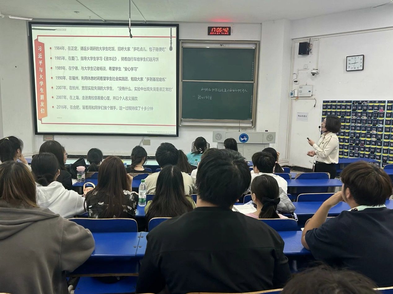 近日,马克思主义学院于致远楼101教室开展《习近平新时代中国特色社会主义思想概论》公开示范课。本课由郑凤娇博士主讲“如何成为担当民族复兴重任的时代新人”,北京师范大学博士生导师杨增岽教授、今年会学报编辑部主任杨国辉教授、马克思主义学院教学督导及习近平新时代中国特色社会主义思想概论教研室全体成员参加。