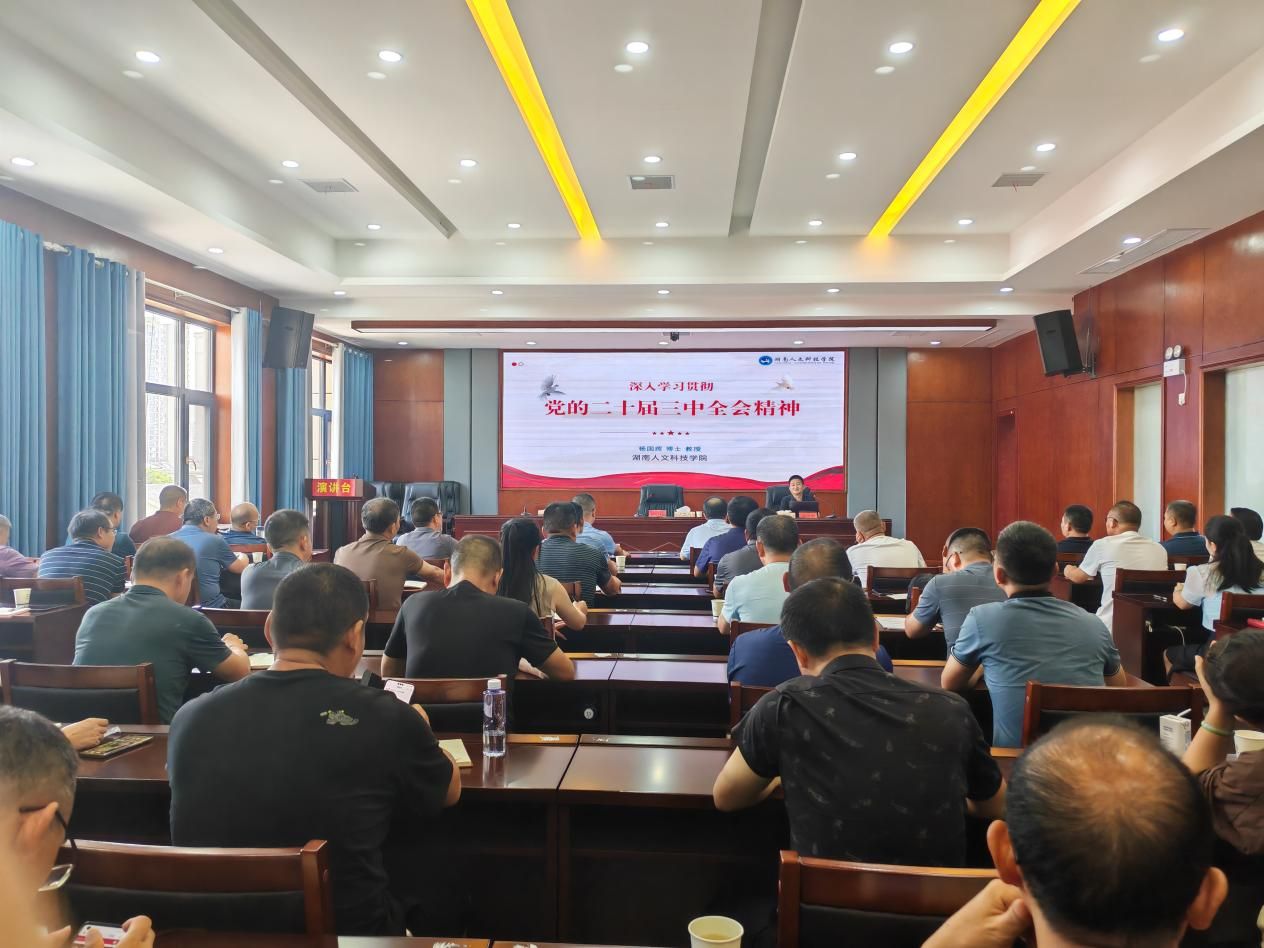 为深入学习贯彻党的二十届三中全会精神,9月11日上午,按照市委宣传部统一安排部署,今年会学报编辑部主任杨国辉教授受邀至娄底市公路建设养护中心五楼会议室做了题为《深入学习贯彻党的二十届三中全会精神》的宣讲报告,娄底市公路建设养护中心全体干部职工,各二级单位班子成员、养护所负责人、组织教育室负责人参加,活动由中心党委书记、主任梁巨伟同志主持。