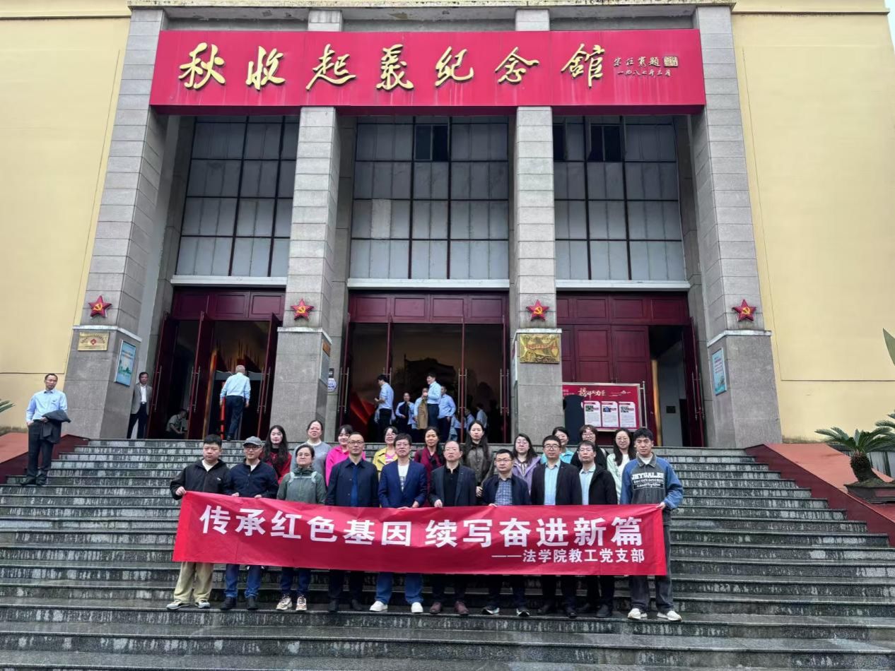 为进一步提升学院教工党员的党性修养,激发奋斗热情,10月26日至27日,法学院教工党支部赴浏阳、铜鼓开展“传承红色基因,续写奋进新篇”主题党日活动。