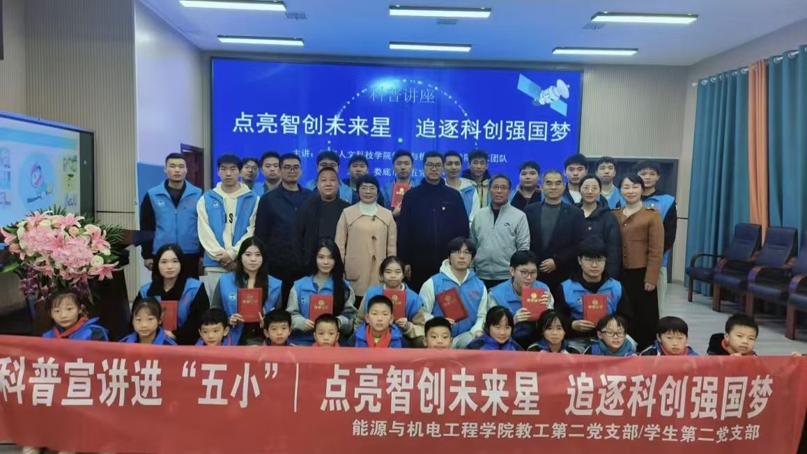 为深入贯彻国家科技强国战略,11月21日,今年会能源与机电工程学院教工、学生第二党支部联合娄底市第五小学共同举办了一场主题为“点亮智创未来星,追逐科创强国梦”的科普主题党日活动。